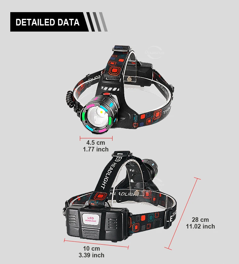 1. Cost-effective and cool fluorescent lamp head design, exquisite design and distinctive, the headlight can be easily found in the dark at night. The headlamp is made of high-quality aluminum alloy. It has superior material and is drop-resistant to 3 meters. It is harder than stone and can be used as a self-rescue tool outdoors.
